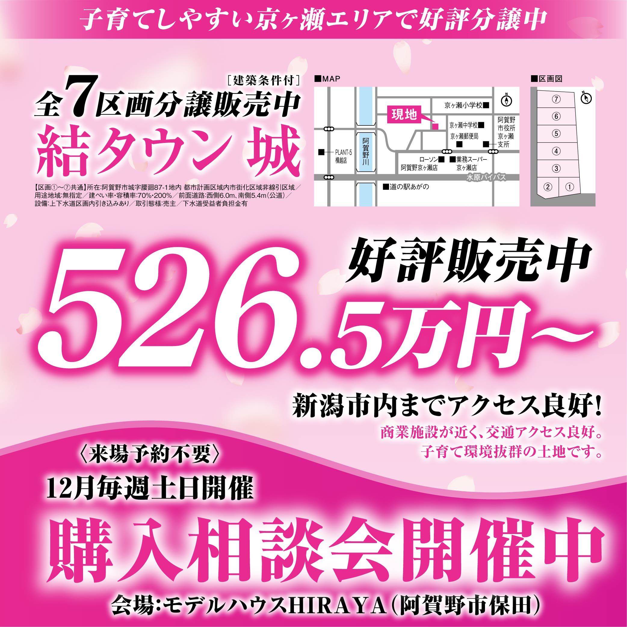 「結タウン 城」分譲地購入相談会|毎週土日モデルハウスHIRAYAで開催|事前予約不要