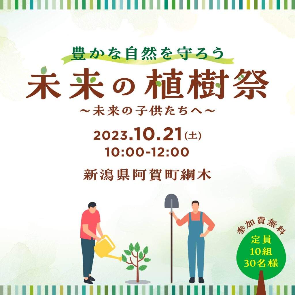 終了しました【参加者募集中10/13(金)締切】未来の植樹祭|2023.10.21(土)開催