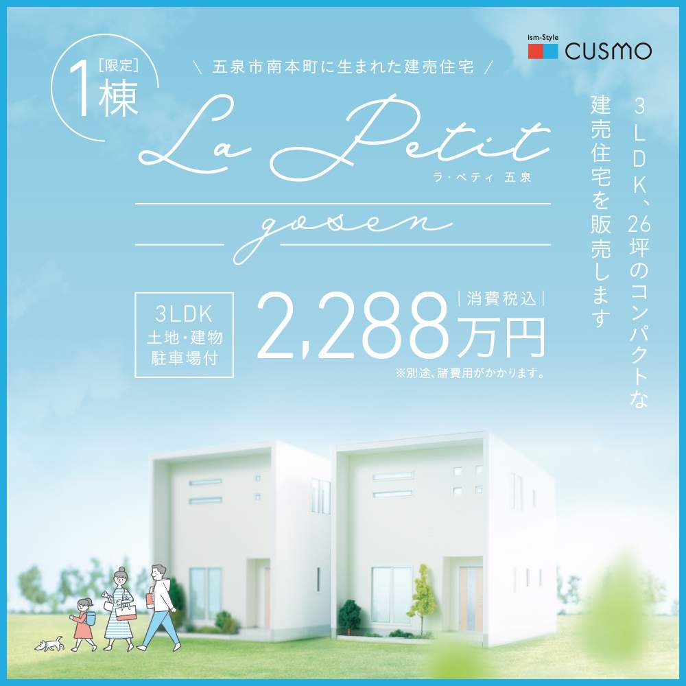 2023年8月五泉市南本町で完成した「LaPetit(ラ・ペティ)五泉」を2,288万円(税込)で販売します。LaPetit五泉は3LDK、26坪のコンパクトハウスです。マイホーム購入をお考えのお客様は、まずは一度お問合 […]