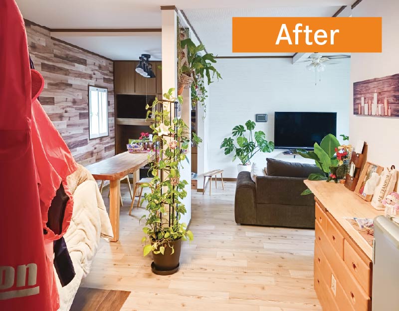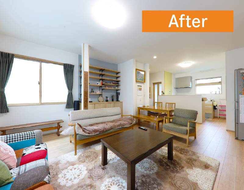 居間とダイニングキッチンをひと続きのLDKに。広さと開放感を感じられる心地よいスペースになりました。